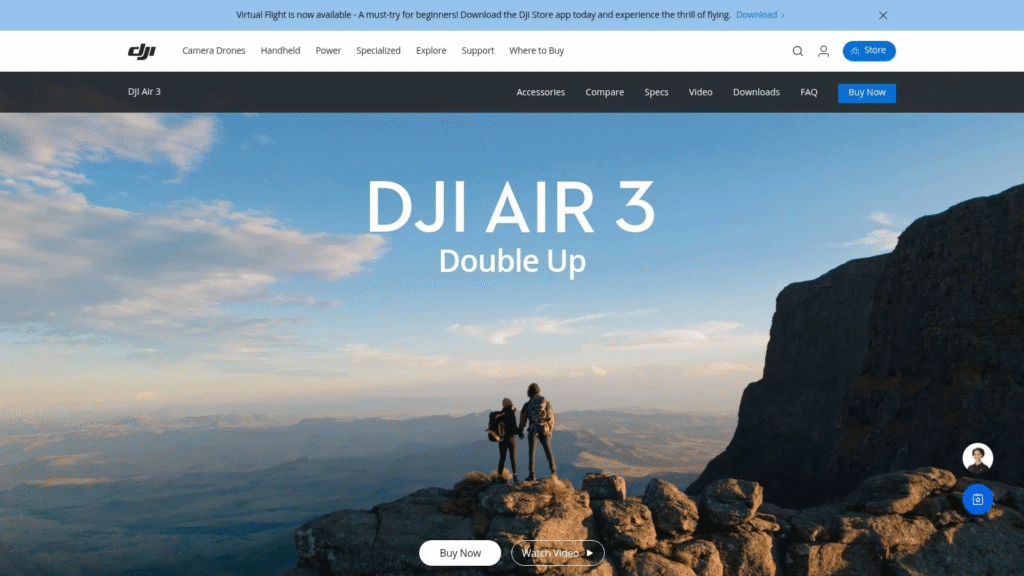 The DJI Air 3 offers an excellent balance of portability, performance, and affordability. Its dual-camera system combines a 24mm wide-angle and 70mm medium telephoto lens, enabling diverse perspectives without changing equipment.