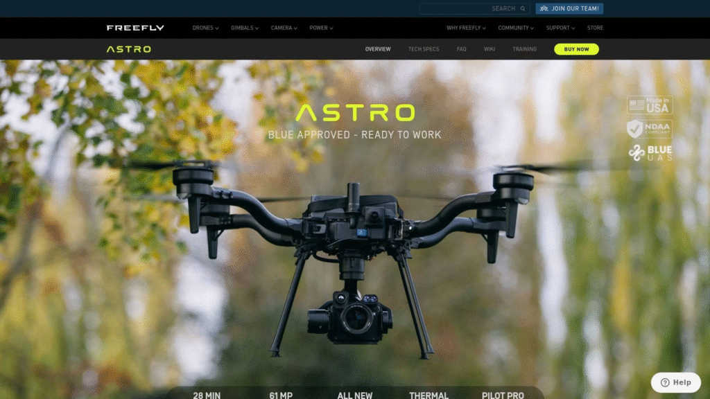 Unlike consumer drones, the Astro emphasizes manual control, giving skilled operators precision for cinematic sequences. Its modular design allows integration with various gimbals and cameras, making it perfect for film, commercials, and high-end production environments.